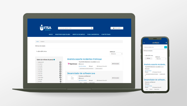 A través de elempleo.com, su empresa podrá registrar ofertas de empleo de los perfiles que su compañía requiera para ser consultadas por egresados y estudiantes en nuestro portal de oportunidades laborales. Aquí contará con hojas de vida de perfiles profesionales. Así mismo, podrá recibir en su correo electrónico, las hojas de vida en formato pdf de los aplicantes a sus vacantes.